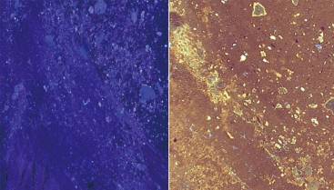 Dry cuttings fluorescent image(up) and wet cuttings fluorescent image(down)